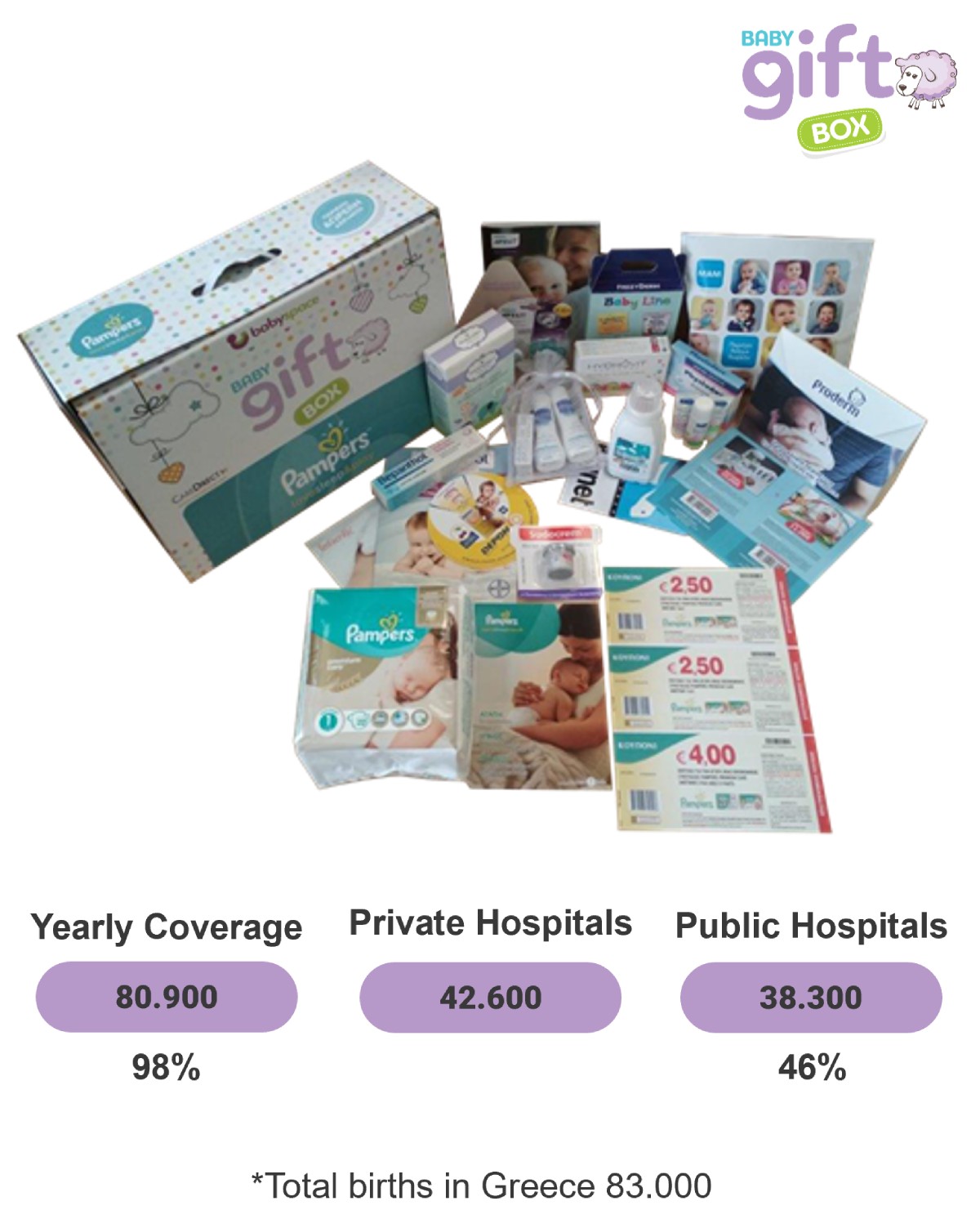 Give new moms and their families the chance to try your product 2-3 days postpartum inside maternity clinics with Baby Gift Box.
